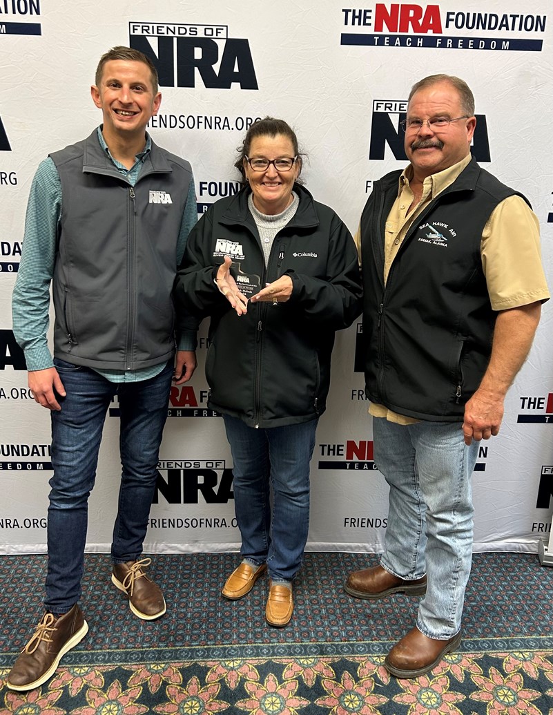 “Patty has built a strong, well-organized committee and consistently leads with purpose and efficiency. She holds regular meetings and thoughtfully assigns roles based on each volunteer’s strengths, maximizing the effectiveness of her team. Widely respected as a leader, Patty has served as the State Fund Chairperson for over 11 years and has been a dedicated Friends of NRA volunteer for more than 15 years.
